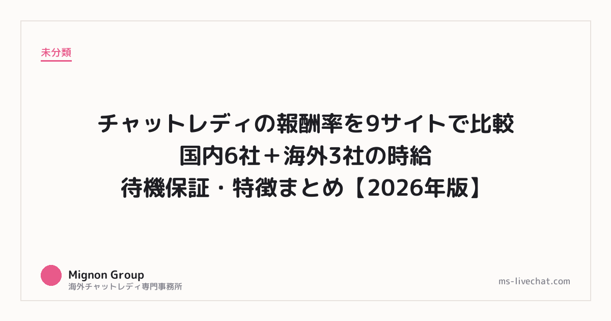 - [海外チャットレディの始め方・稼ぎ方・サイト選びまとめ【2026年版】](/overseas-chatlady-guide/)