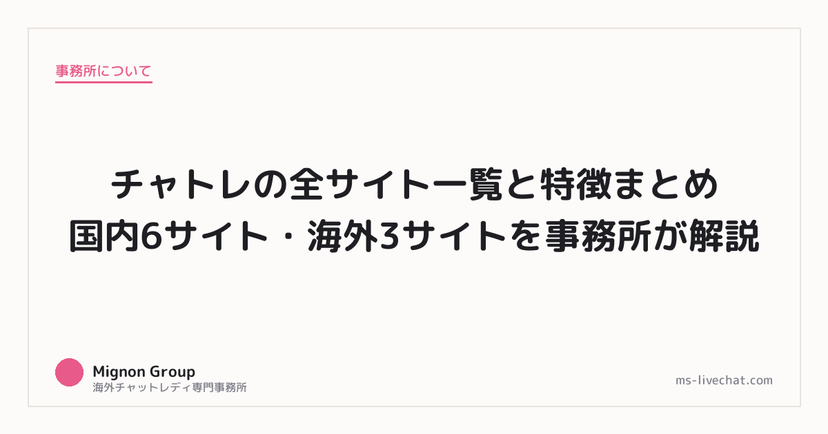 この記事では、国内6サイトと海外3サイト、合計9サイトの特徴を事務所の立場から率直に解説する。うちは全サイト対応の事務所なので、特定のサイトに肩入れする理由がない。それぞれのメリットとデメリットを正直に書く。自分がどのサイトに向いているか、この記事を読んで判断してほしい。各サイトの報酬体系、向き不向き、月収シミュレーションまで一気に解説する。これ1本で全サイトの概要が掴めるようにまとめた。