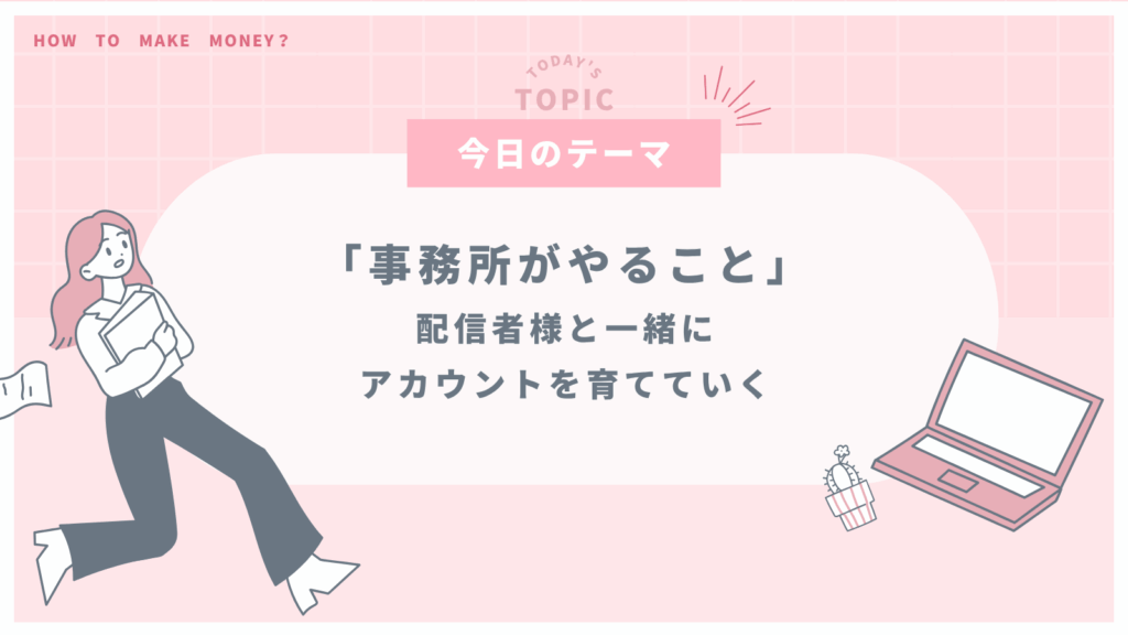 事務所の1番大きな仕事は所属の配信者の改善点を見つけることです。当事務所は定期的にフィードバックを伝えて、月の稼ぎの最大化を目指してリードしていきます。フィードバックに終わりはありません。基本的な事ですが、意識することは新規を掴む・リピー... ブログ