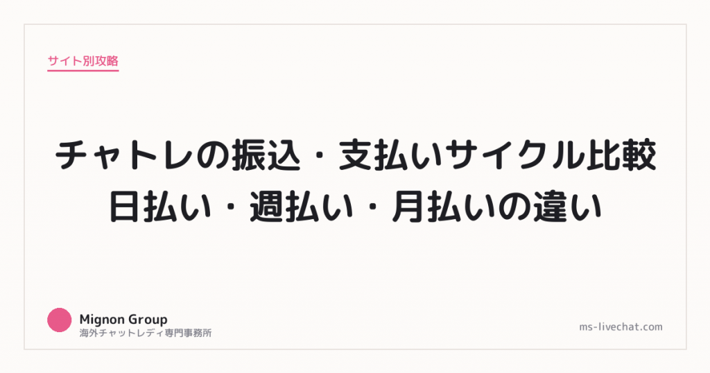 チャトレの振込・支払いサイクル比較|日払い・週払い・月払いの違い。事務所運営者が具体的な数字と実例で解説します。 -