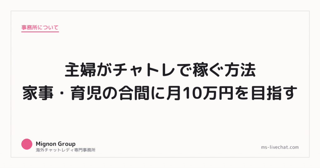 主婦がチャトレで稼ぐ方法|家事・育児の合間に月10万円を目指す。事務所運営者が具体的な数字と実例で解説します。 -