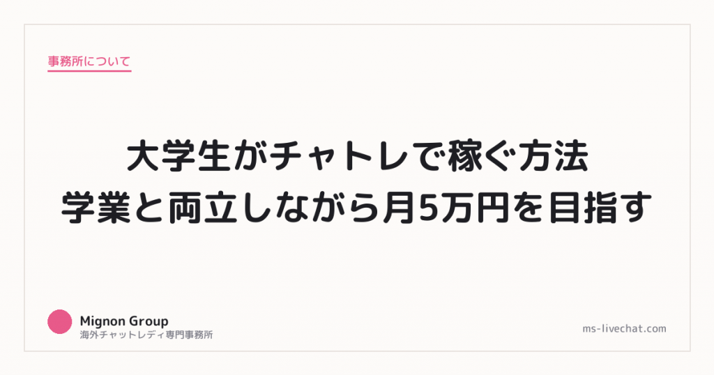 大学生がチャトレで稼ぐ方法|学業と両立しながら月5万円を目指す。事務所運営者が具体的な数字と実例で解説します。 -