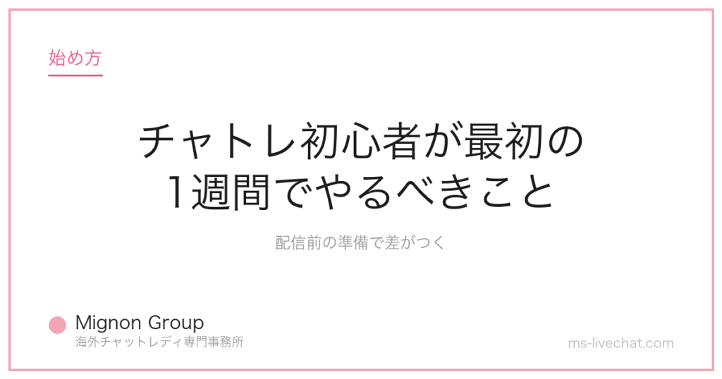 チャトレ初心者が最初の1週間でやるべきこと|配信前の準備で差がつく。事務所運営者が具体的な数字と実例で解説します。