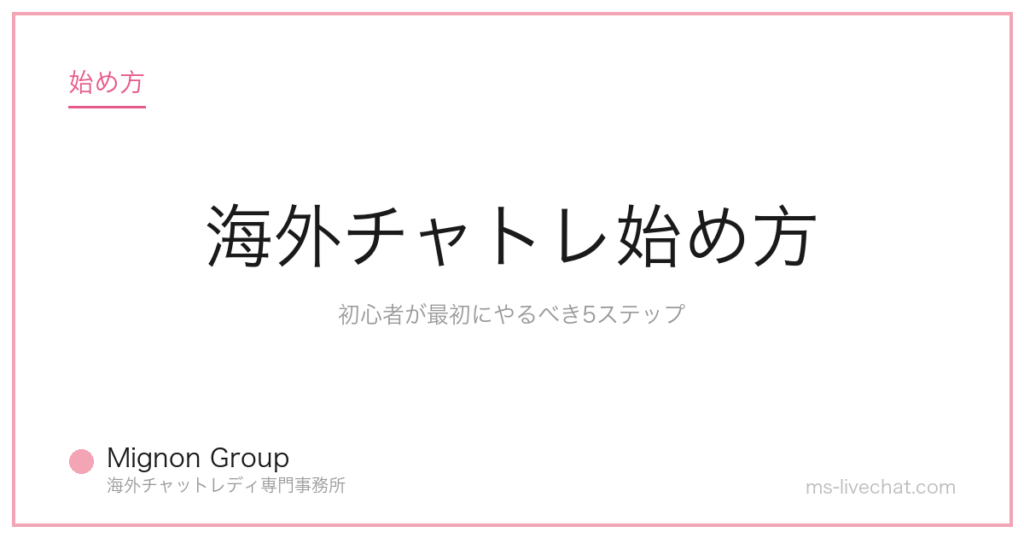 海外チャトレ始め方を初心者向けに5ステップで解説。事務所選び→サイト選び→機材準備→初配信→稼ぎ方まで、Mignon Groupが実際のサポート経験から失敗しない順番を公開【2026年完全ガイド】 -