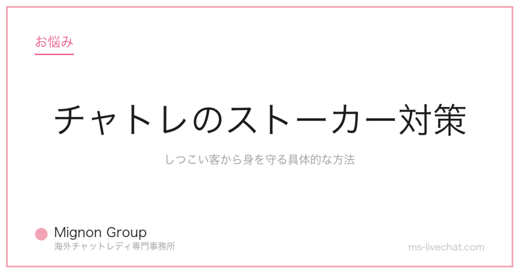 チャトレのストーカー対策|しつこい客から身を守る具体的な方法。事務所運営者が具体的な数字と実例で解説します。 -