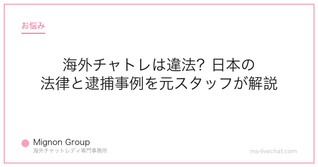海外チャトレは違法?公然わいせつ罪・わいせつ電磁的記録媒体頒布罪・風営法の観点から過去の逮捕事例を元事務所スタッフが解説。逮捕されないための3ルールと安全な事務所選びの基準【2026年】 -