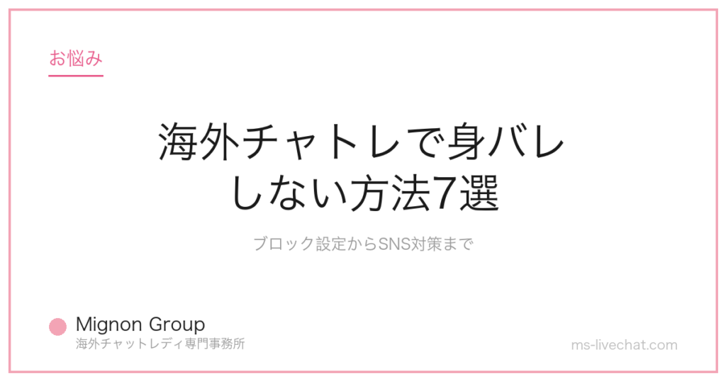 海外チャトレで身バレしない方法7選。地域ブロック設定・顔加工・個人情報の守り方・SNS対策・身バレ事例と対処法まで、Mignon Groupが100人のキャストサポートで得た実践ノウハウを公開【2026年】 -