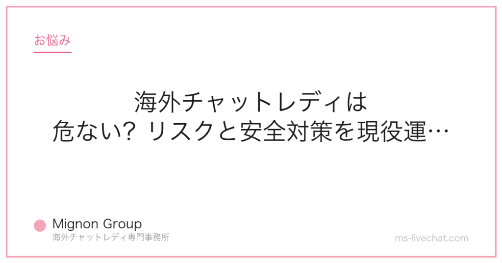 海外チャットレディは危ない?リスクと安全対策を現役運営者が本音で解説。事務所運営者が具体的な数字と実例で解説します。 -