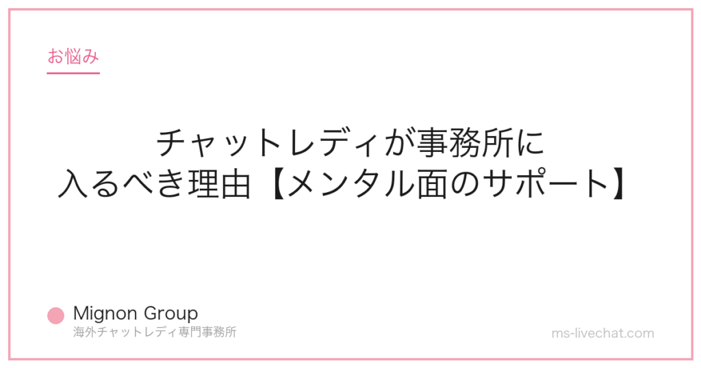 チャットレディが事務所に入るべき理由【メンタル面のサポート】。事務所運営者が具体的な数字と実例で解説します。