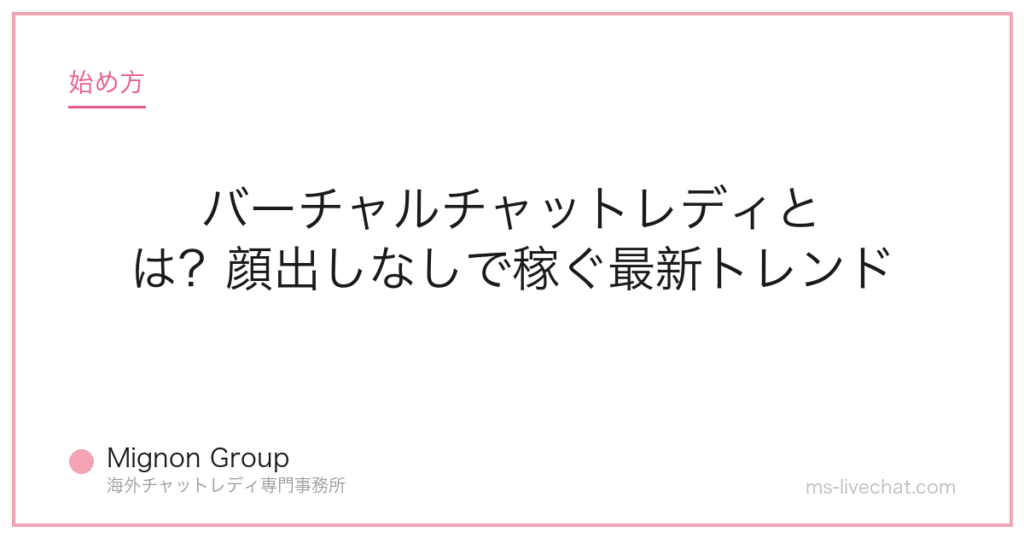 バーチャルチャットレディとは?顔出しなしで稼ぐ最新トレンド。事務所運営者が具体的な数字と実例で解説します。 -