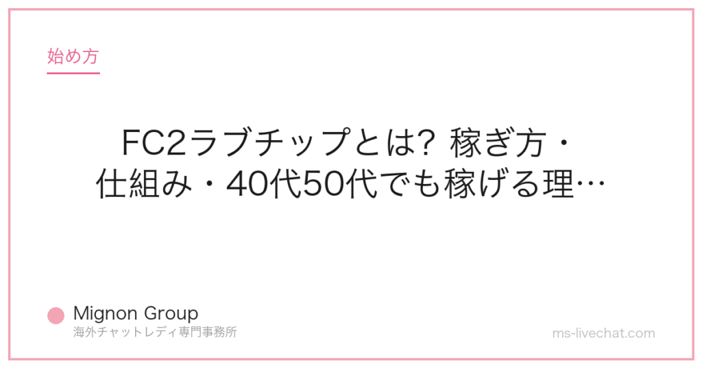 FC2ラブチップとは?稼ぎ方・仕組み・40代50代でも稼げる理由を解説。事務所運営者が具体的な数字と実例で解説します。 -