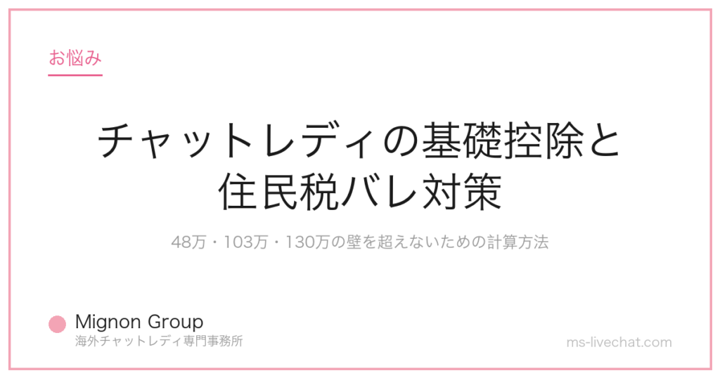 チャットレディの基礎控除と住民税バレ対策|48万・103万・130万の壁を超えないための計算方法