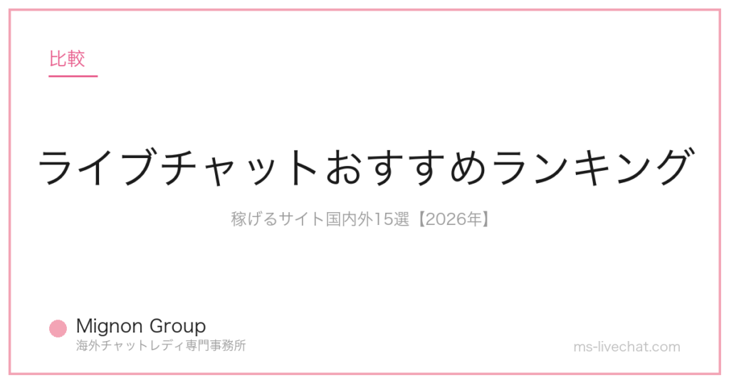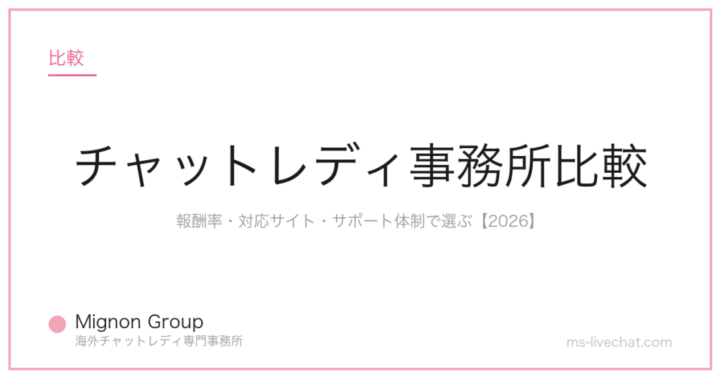 国内外のチャットレディ事務所を対応サイト・報酬率・サポート体制で比較。海外特化型と国内大手の違い・選び方の判断基準まで完全ガイド。 -