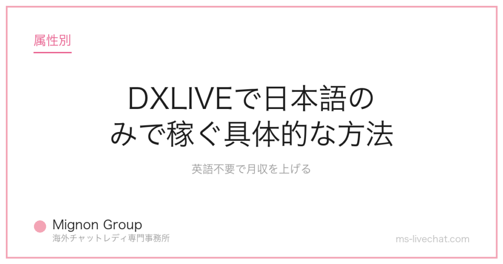 DXLIVEは日本語だけで配信して稼げます。英語不要の理由・日本語配信での集客方法・日本人ユーザーが多いDXLIVEの特性を活かした稼ぎ方を具体的に解説します。 -