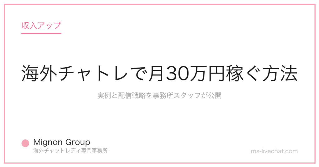 海外チャトレで月30万円稼ぐ方法|実例と配信戦略を事務所スタッフが公開