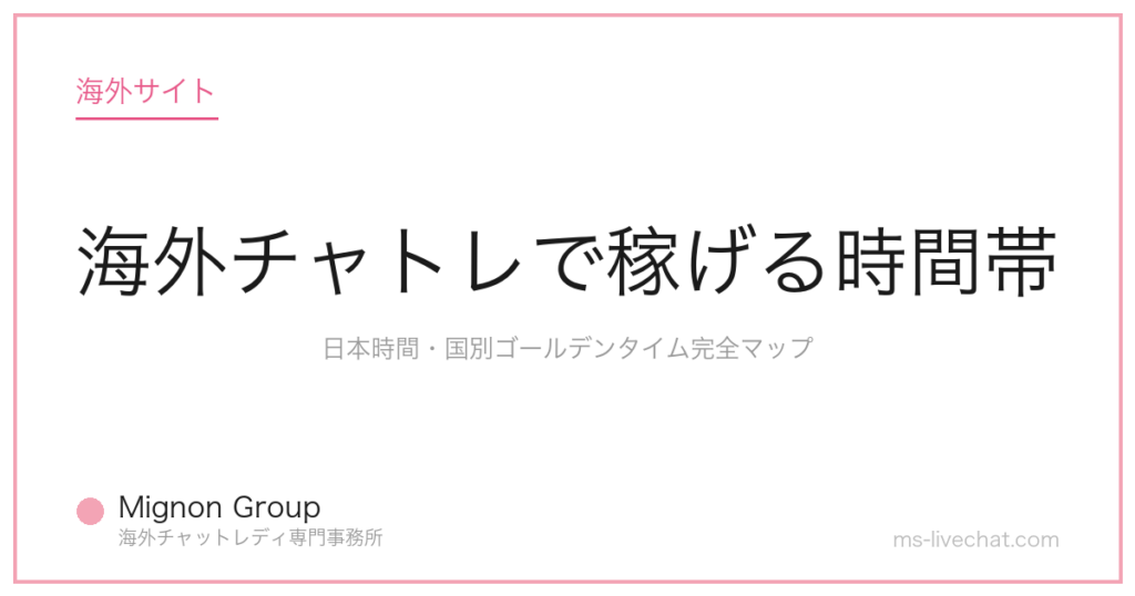 海外チャトレで稼げる時間帯を、日本時間と海外ユーザーのゴールデンタイム別に整理。時差を味方にする配信設計。 -