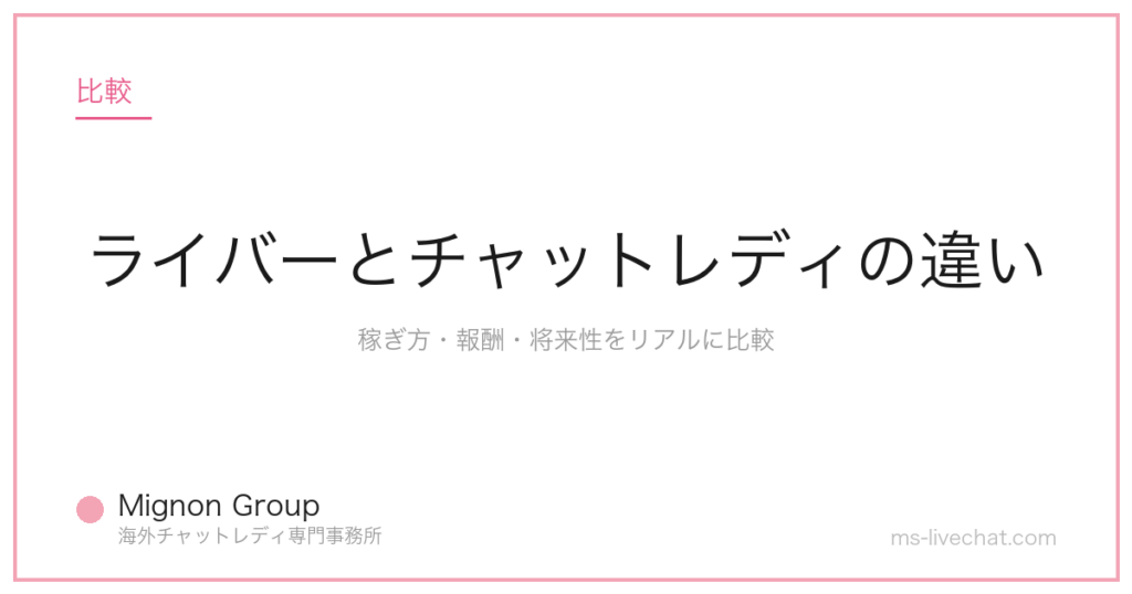 ライバーとチャットレディの違い|稼ぎ方・報酬・将来性をリアルに比較。事務所運営者が具体的な数字と実例で解説します。