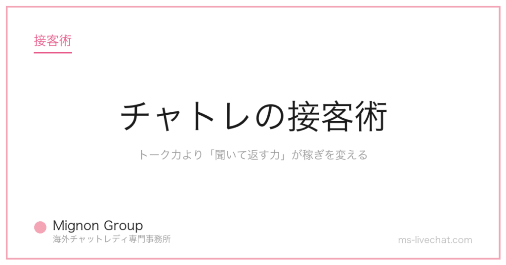 チャトレの接客術|トーク力より「聞いて返す力」が稼ぎを変える。事務所運営者が具体的な数字と実例で解説します。 -