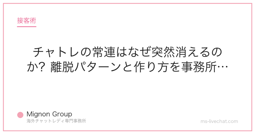 チャトレの常連はなぜ突然消えるのか?離脱パターンと作り方を事務所が解説。事務所運営者が具体的な数字と実例で解説します。
