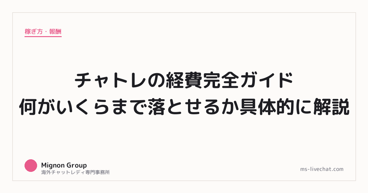 この記事では、チャトレが経費にできるものを全て洗い出して具体的な金額感とともに書く。「知らなかったから計上していなかった」で損をしている人が本当に多い。それぞれいくらくらいになるかを具体的に書く。うちの事務所の在籍者から実際に聞かれることが多い内容を中心に、税務署に聞かれても問題ない範囲で解説する。