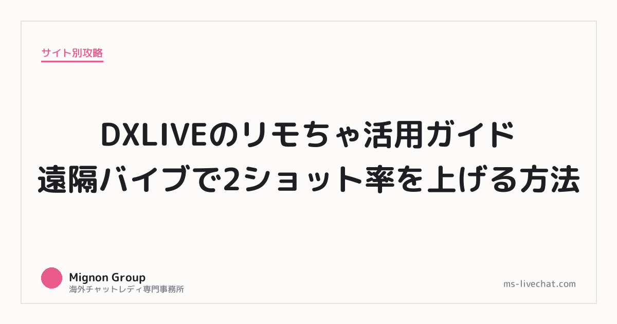 DXLIVEのリモちゃ活用ガイド|遠隔バイブで2ショット率を上げる方法。事務所運営者が具体的な数字と実例で解説します。