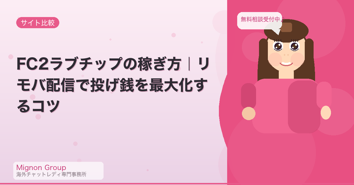 この記事では、FC2ラブチップの仕組みからリモバ(リモートバイブ)配信で投げ銭を最大化するコツまで、事務所の立場から正直に書いていく。報酬率の考え方、おもちゃの選び方、チップが飛ぶ配信テクニック、顔出しなしでも稼げる理由、月収シミュレーション、事務所経由のメリット・デメリットまで全部出す。
