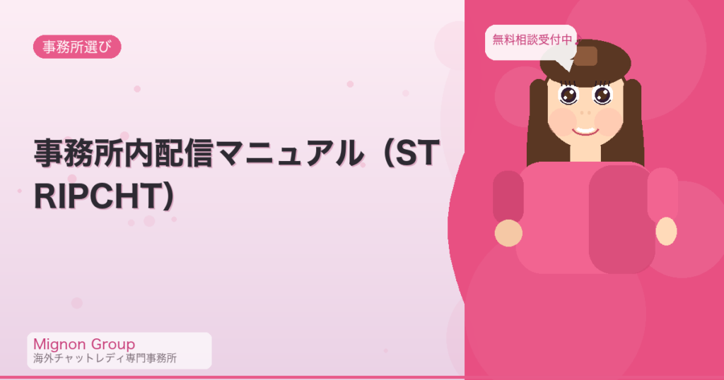 事務所内配信マニュアル(STRIPCHT)。事務所運営者が具体的な数字と実例で解説します。