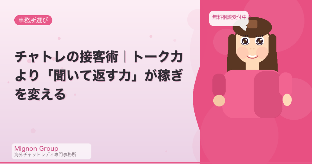 チャトレの接客術|トーク力より「聞いて返す力」が稼ぎを変える。事務所運営者が具体的な数字と実例で解説します。 -