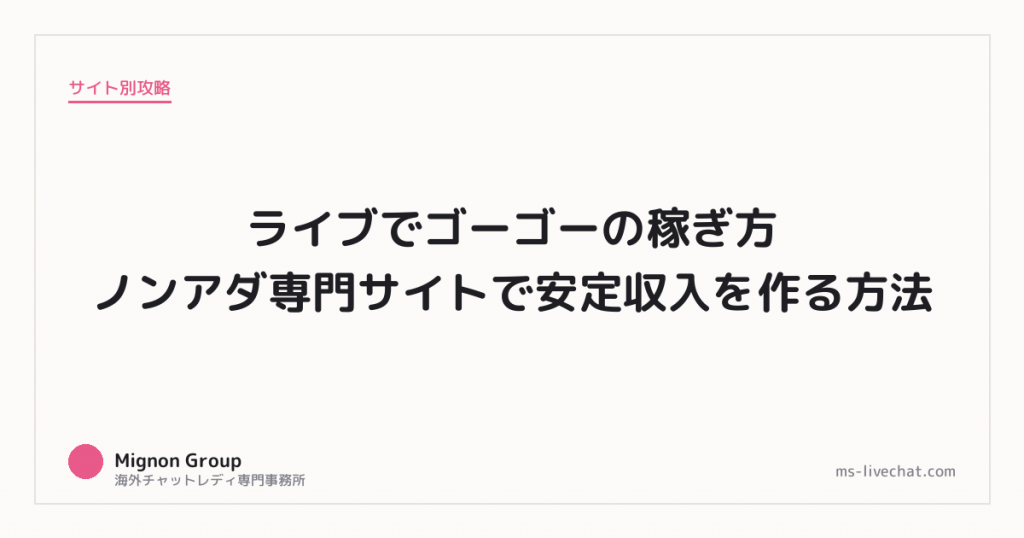 ライブでゴーゴーの稼ぎ方|ノンアダ専門サイトで安定収入を作る方法。事務所運営者が具体的な数字と実例で解説します。