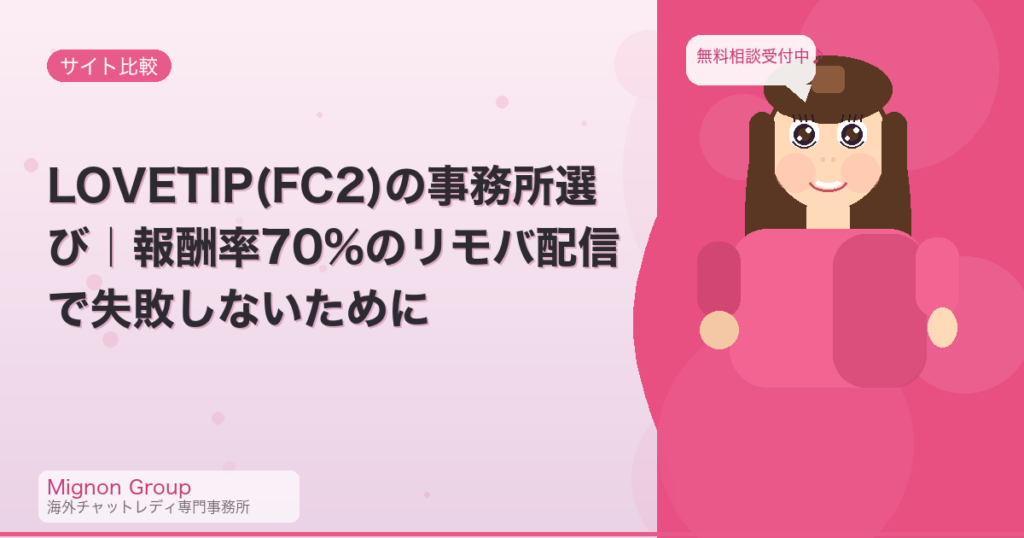 LOVETIP(FC2)の事務所選び|報酬率70%のリモバ配信で失敗しないために。事務所運営者が具体的な数字と実例で解説します。 -