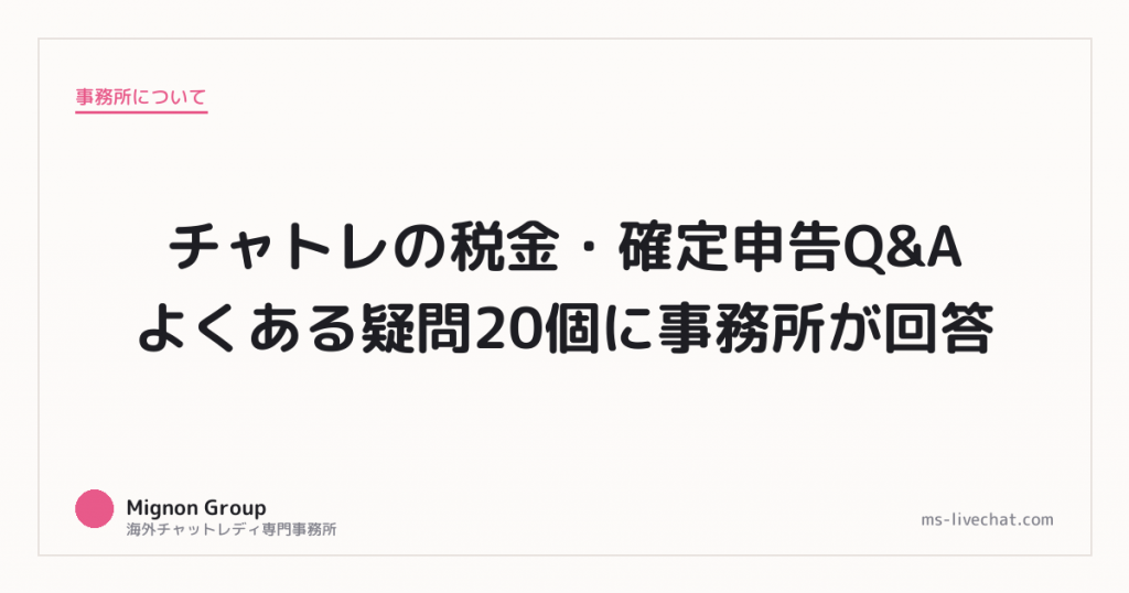チャトレの税金・確定申告Q&A|よくある疑問20個に事務所が回答。事務所運営者が具体的な数字と実例で解説します。 -